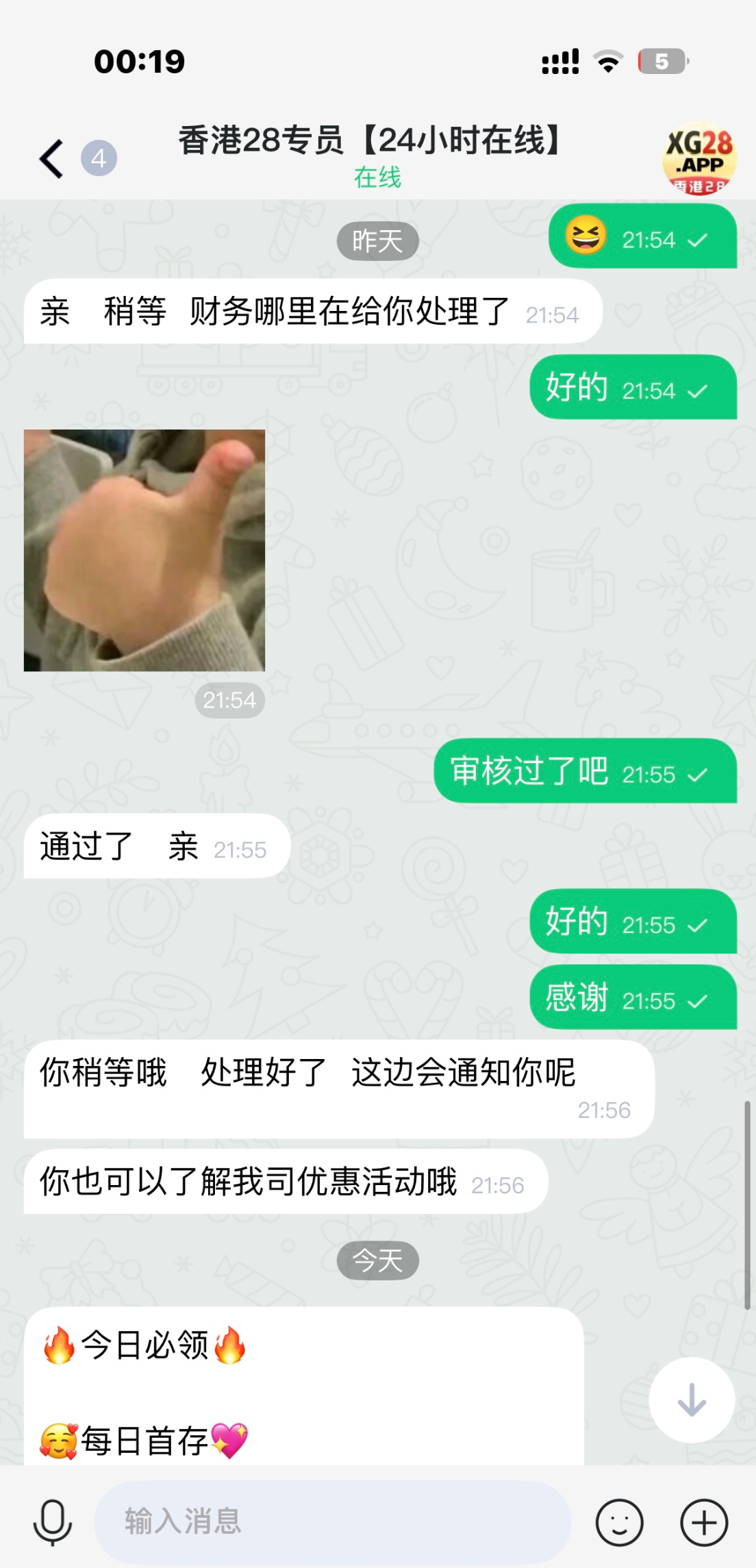 香港28注册送58,注册完绑定出款方式找在线客服说领取注册彩金她会问你哪里来的,就说预测网看到的,然后她会发你一个链接添加专员然后重复上面操作即可,亲测出款300,预测网连接在图中自行复制,望各位老哥得吃,出款给弟弟团一个