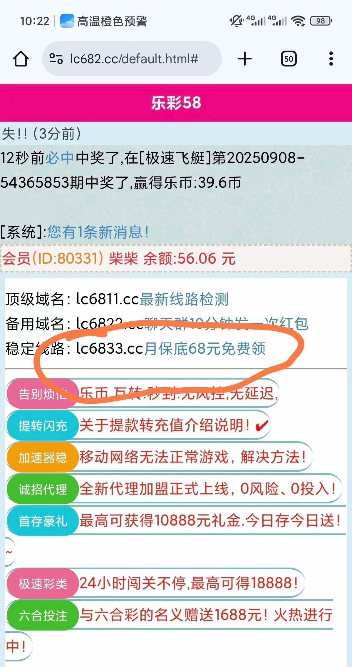 乐彩新用户注册送18  118提   老用户填写红包码给8 好像签到还有2 不知道在哪 (我画红圈位置输入  369147领取) 100提秒到 刚提k豆1分钟到账      红包码的8每月8号才有
