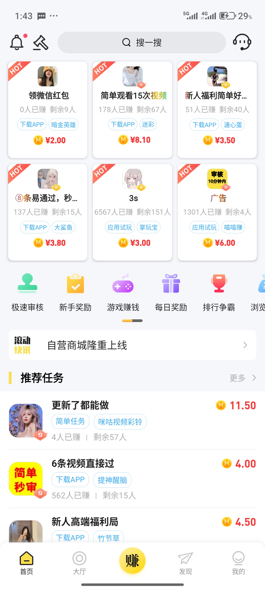 挂壁的兄弟们可以看看,之前都是撸了几块钱就不撸了,今天挂壁了吃土了,不到20分钟撸了80多块钱