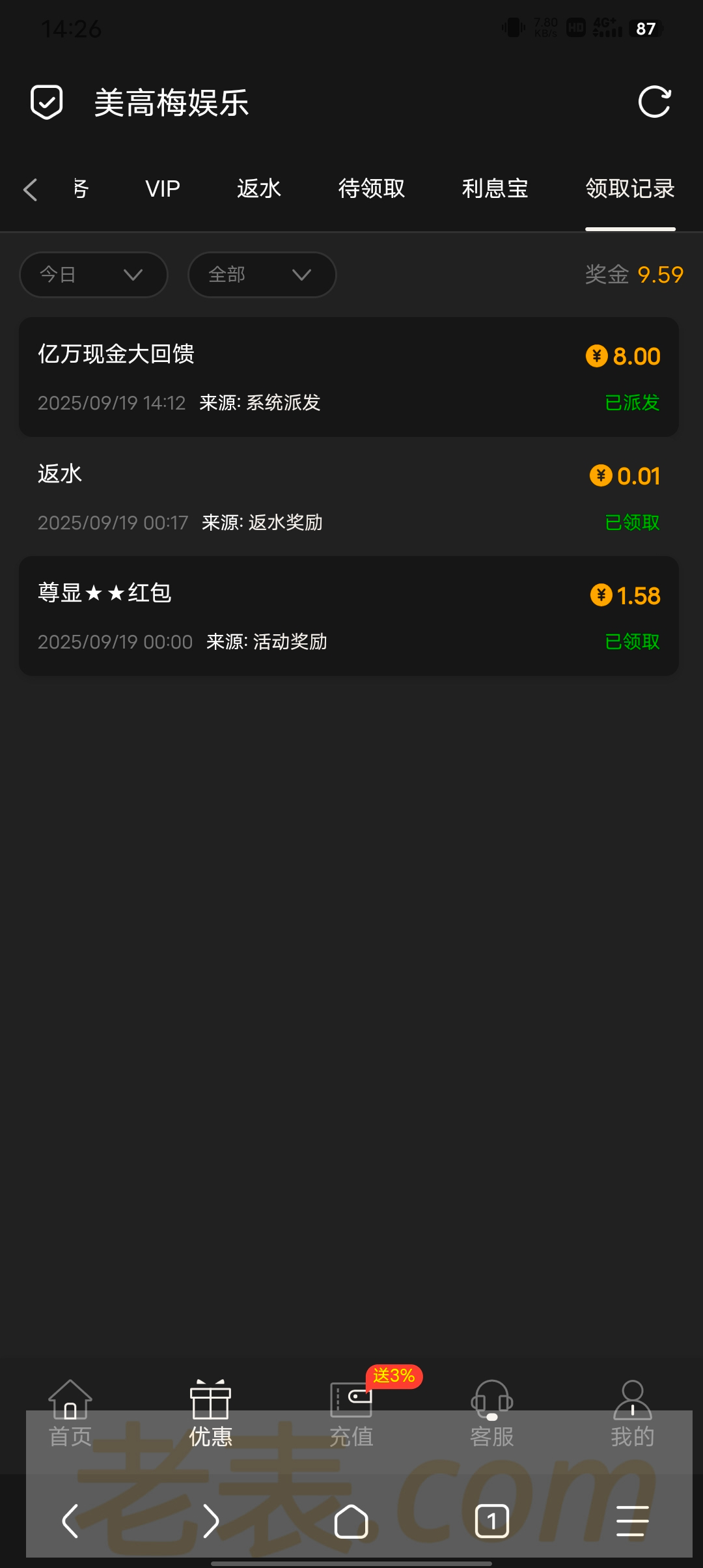 每月9,19,29都有,有号玩过的上去看看,玩挺久了没被黑过,应该是个半黑,最低10提
