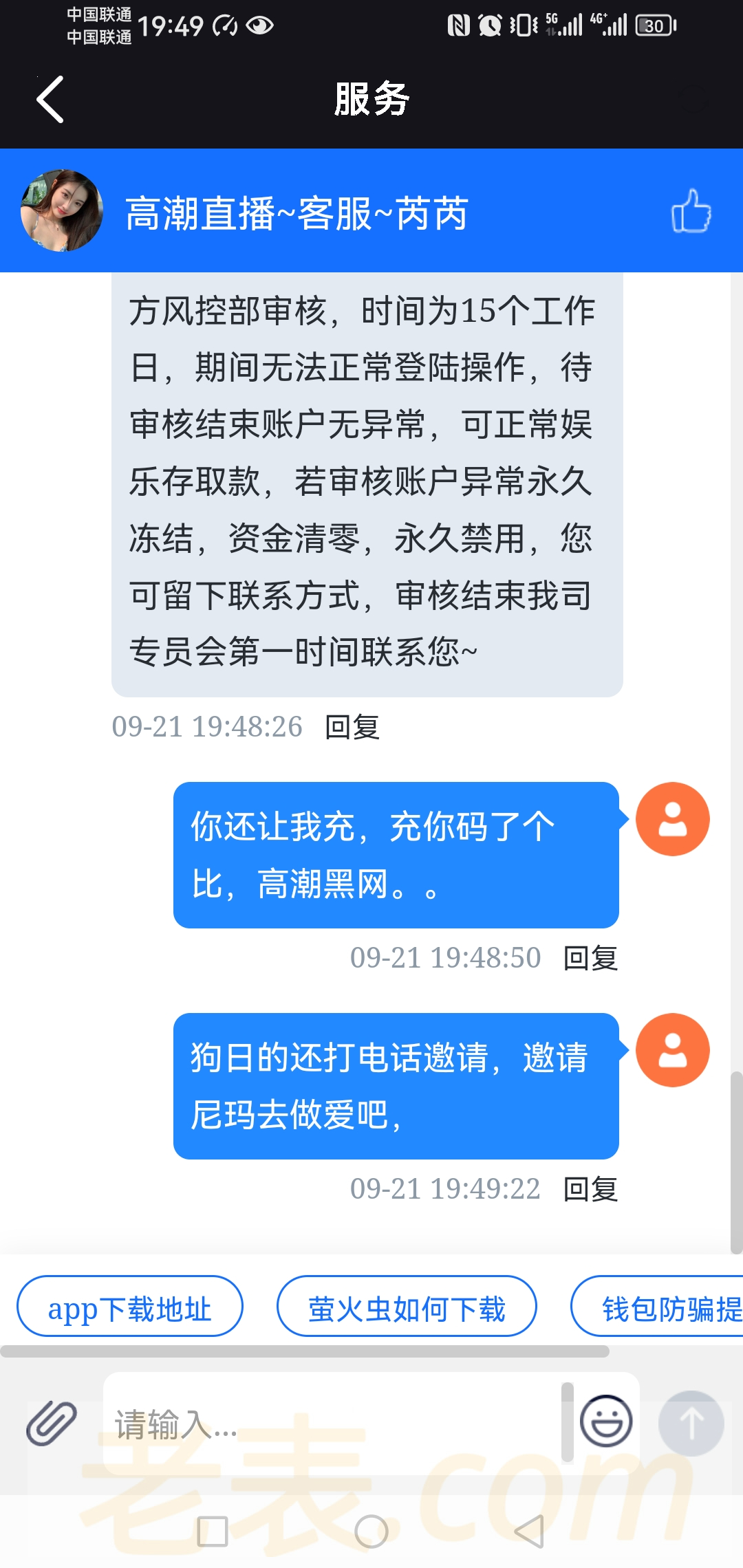 打电话邀请送18,提款让充值任意一笔,充了流水也打了,在提款要手持身份证,银行卡,都提供了,提款一直处理中,最后拉黑。。兄弟们帮你们试了,黄播网靠不住。太黑了